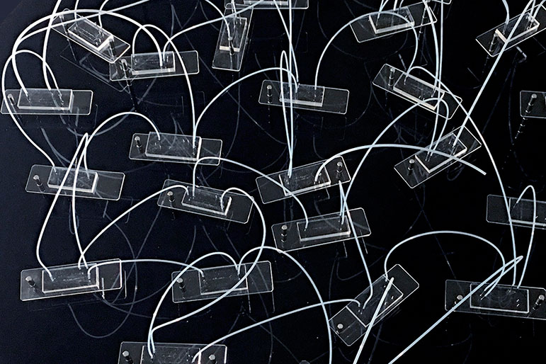 Microfluidic Oracle Chip, installation view kunstmuseum Bonn, 2019 (fig. top),