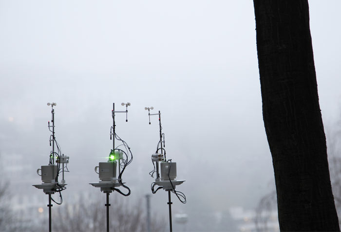 The sculptures have a nomadic quality. Like parasites they can be found next to aerosol* measurement stations, in parks, on streets, on roofs or in the neighbourhood of research laboratories.